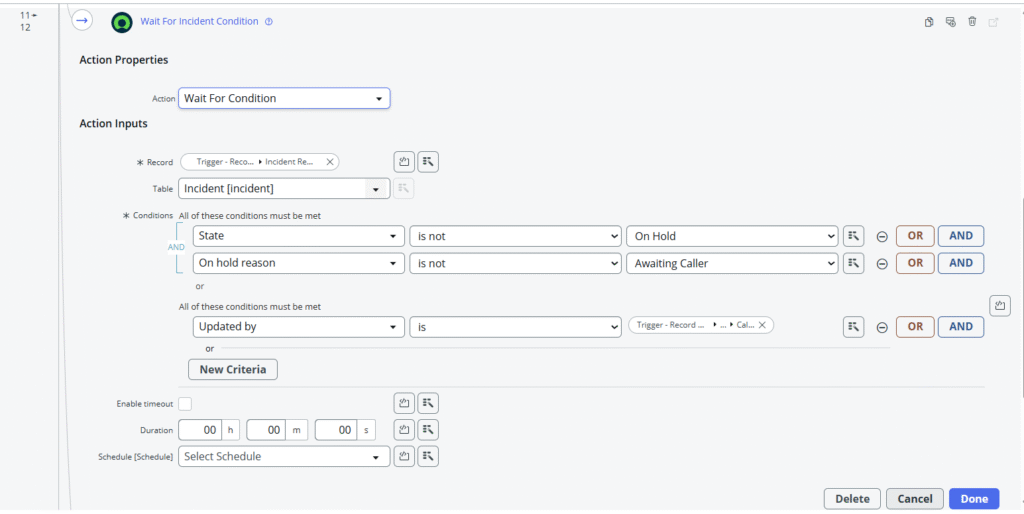 12 | Wait For Incident Condition | This step pauses and waits for a specific set of conditions to be met on the same Incident record. |